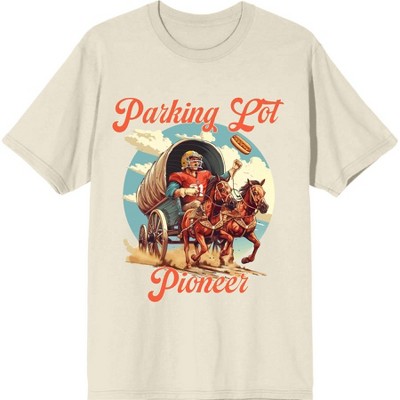 "Parking Lot Pioneer" Old West Wagon Football Cowboy Adult Natural Short Sleeve Tee-Medium