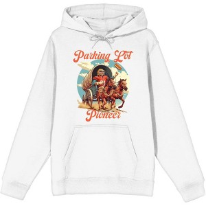 "Parking Lot Pioneer" Old West Wagon Football Cowboy Adult White Long Sleeve Hoodie-Small