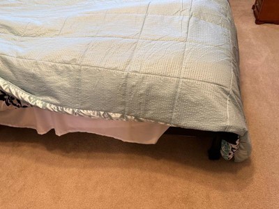 [This review was collected as part of a promotion.] Not a big fan of this blanket. It’s very thin and the material is scratchy like, if you have dry and you feel it catch on the blanket type feel… the fit is nice it hangs over more then some queens and I really like that. All about how you like your material. I’m just a soft blanket type gal