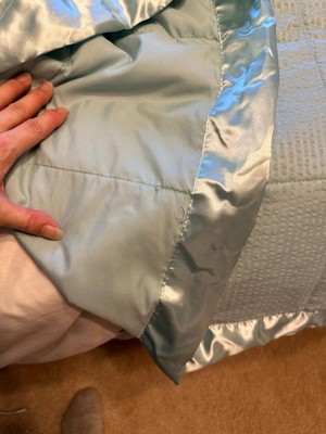 [This review was collected as part of a promotion.] I absolutely love the color and the fact that it’s lightweight. The material is quite interesting as I thought it would feel more like down but it doesn’t. It’s soft and smooth on your skin which is nice. Each side has different patterns. The side for people to see has some texture effect visually but both sides feel the same. The only reason I didn’t give 5 stars is that there are loose threads through the satin stitching in multiple spots