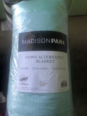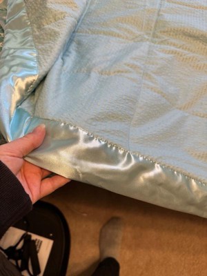 Make every night a cozy one with this textured oversized down alternative blanket. The color-matched 3" satin trim adds a luxury element that feels great on your skin. It features a 3M Scotchgard Moisture Management Treatment that wicks away moisture while helping release stains. Machine washable for easy care with a classic box quilting design.