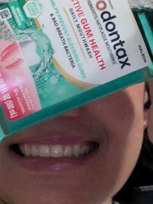 [This review was collected as part of a promotion.] Parodontax active gum health mouthwash helped prevent gum bleeding and bacteria that causes bad breath. Eliminates 99.9% of plaque bacteria fighting gingivitis leaving your breath fresher with every rinse. Does not contain alcohol and it leaves a mint taste and easy to pour and measure bottle. Love it.