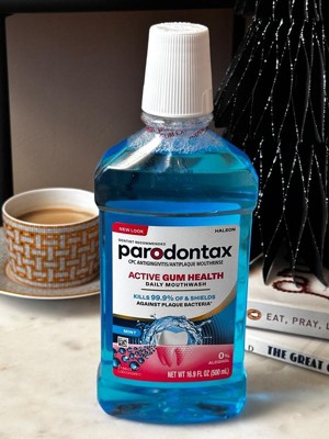 - Three 16.9 fl oz bottle of Parodontax Active Gum Health Mouthwash, Mint