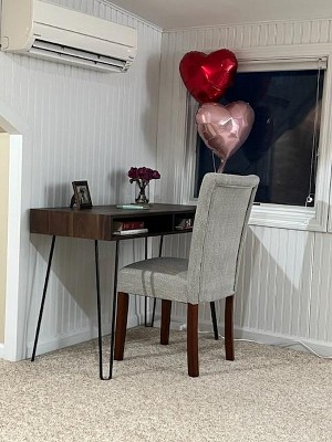 Easy to assemble and looks great with our desk. Really pretty piece and good quality for the price.