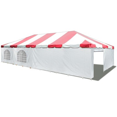 We purchased 3 of these tents to use for weddings at our venue. The first time putting one up, we had two poles bend on us. We reached out to the supplier and are still waiting on replacement parts after two weeks. The second time putting the tent up, we had another 3 parts bend. The poles are very poor quality and do not hold up well. For the price we expected much higher quality! We also have noticed that the material is very hard to clean and it takes 4-5 hours to put this pu (20'x40') and 5-6 people to do so. We will be returning the other two tents and looking for something different.