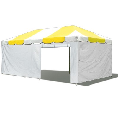 We purchased 3 of these tents to use for weddings at our venue. The first time putting one up, we had two poles bend on us. We reached out to the supplier and are still waiting on replacement parts after two weeks. The second time putting the tent up, we had another 3 parts bend. The poles are very poor quality and do not hold up well. For the price we expected much higher quality! We also have noticed that the material is very hard to clean and it takes 4-5 hours to put this pu (20'x40') and 5-6 people to do so. We will be returning the other two tents and looking for something different.