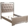 Mirror accents and croc finish as well as deep tufted headboard are featured on this classic glam look. Large scale design and striking colors add to this stunning group. A perfect choice for your home.