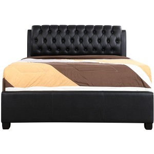 This upholstered casual panel bed is available in a choice of finishes and sizes. Choose from twin, full, queen and king. Support slats are included but you will need to use a box spring or foundation. Faux leather bed includes a thick padded headboard.