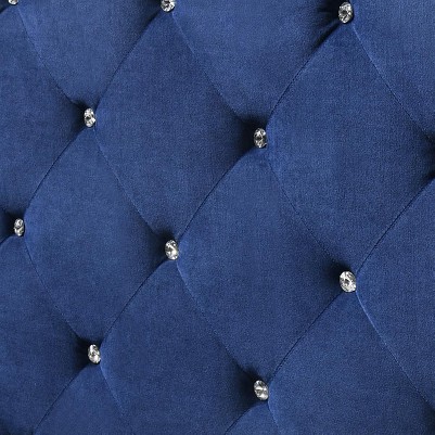 - Deep tufted upholstered headboard and footboard with soft velvet cover with jeweled tufting and chrome nails head