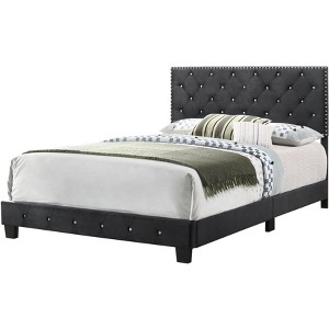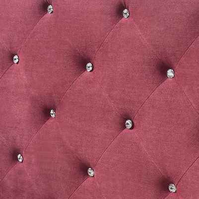 - Deep tufted upholstered headboard and footboard with soft velvet cover with jeweled tufting and chrome nails head