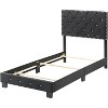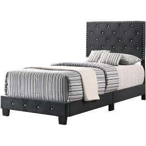 - Deep tufted upholstered headboard and footboard with soft velvet cover with jeweled tufting and chrome nails head