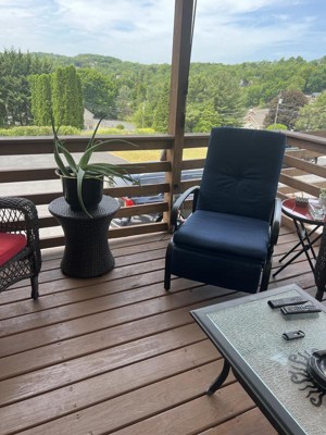Guests appreciate the comfort and durability of these outdoor recliners, making them ideal for relaxing on patios or porches. Many find the assembly straightforward, and the reclining feature is particularly praised for its ease of use. The chairs are noted for their sturdy construction and attractive design, fitting well in various outdoor settings. Overall, they provide a cozy spot for enjoying leisure time, whether reading or napping.