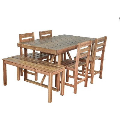 Patio Dining Sets for 4, All Weather Rattan Outdoor Table and Chairs with Acacia Wood Tabletop