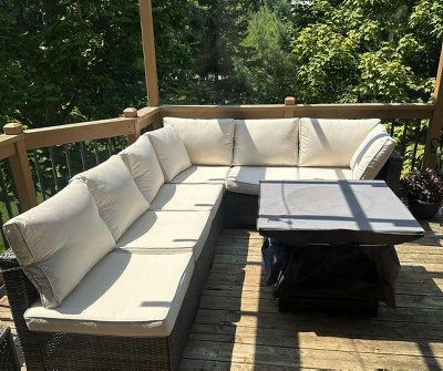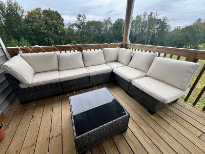 When opening the package, we took everything out to group pieces together in order to assemble it. That's when we noticed there were no directions included. Emailed Garvee and they needed the Target order number just to look into it. once provided, it took 2 business days to get the directions emailed back. The entire set took my wife and myself 2 hours to put together. For an outdoor sectional that we paid under $400 for it, it will do. But, I wouldn't buy it again. The cushions and back cushions are not very comfortable. The bottom cushions keep sliding off the open end of the couch.