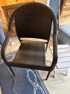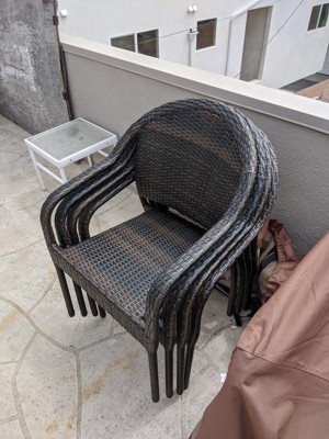 Balkene Home Rhodos Outdoor Café Wicker Stacking Hand Woven No Assembly All Weather Steel Powder Coated Frame Lightweight Portable - Black - Set of 4