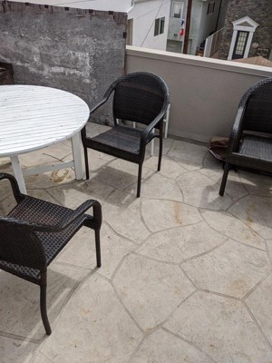 I bought these stackable, outdoor, patio chairs to replace the rusty, deteriorating ones I had previously. I purchased a chair cover to hopefully increase the lifespan of these chairs seeing how I live near the beach and so have highly humid/salty air most evenings and intense direct sunlight, especially during the summer and fall seasons. I really like the way they look on my patio even without having replaced the patio table. They are lightweight chairs which makes them easy to move around and were easy to get upstairs to the patio. I've had them for less than a month and they've held up well thus far.
