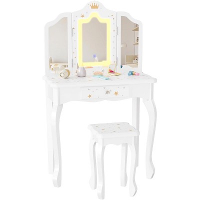 Patiojoy Kids Vanity 2 in 1 Princess Makeup Desk & Chair Set Safe Tri-fold Mirror