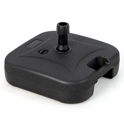 Our fillable umbrella base stand is specially designed for accommodating offset patio umbrella within 9 ft with the pole diameter within 1.9". It can reach up to 198 lbs maximum capacity when filled with water and sand. Then your offset umbrella will be reliably supported to resist wind. And it is easy to fill with large spout. Likewise, drainage is quite convenient with built-in drain hole. Made of premium HDPE, the umbrella base features excellent weather-resistance to cooperate with outdoor environment. Besides, the assembly is a breeze for you with simple steps! Equipped with 2 wheels and hidden handles, it won't be a strenuous work to move the large umbrella base.