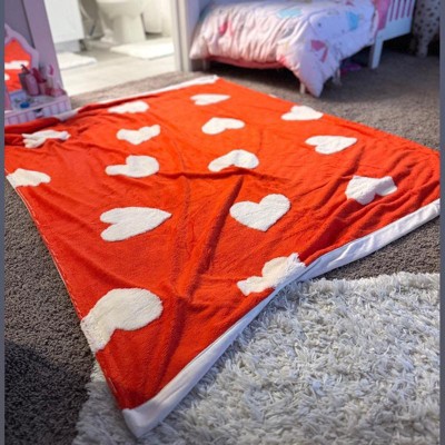 [This review was collected as part of a promotion.] I love this blanket! This blanket is so soft and comfy and it just makes you want to snuggle up on you couch and relax. The whole thing is nice and plush one side has the heart pattern and the opposite side has all white. I purchased this for my daughter, since she loves to snuggle and I know she will be so excited to use this once I give it to her. I also like the white boarder around the whole thing, just a little detail that makes the blanket a little more upgraded, in my opinion.