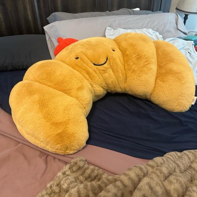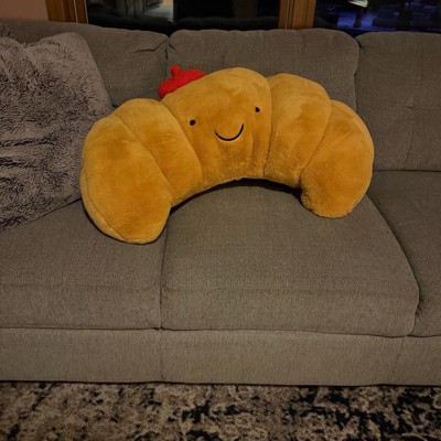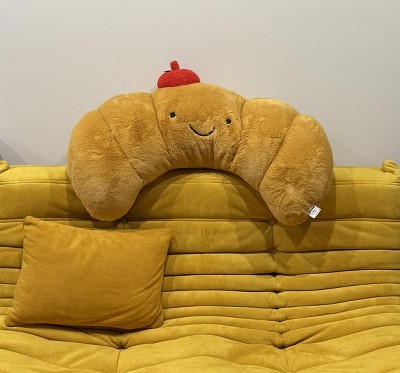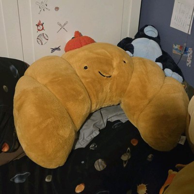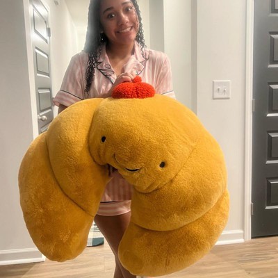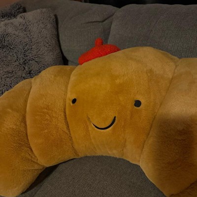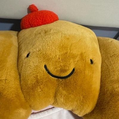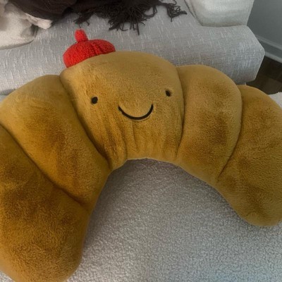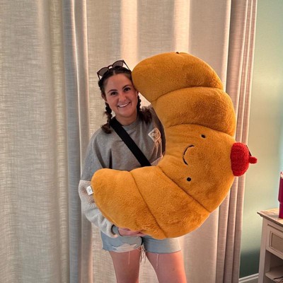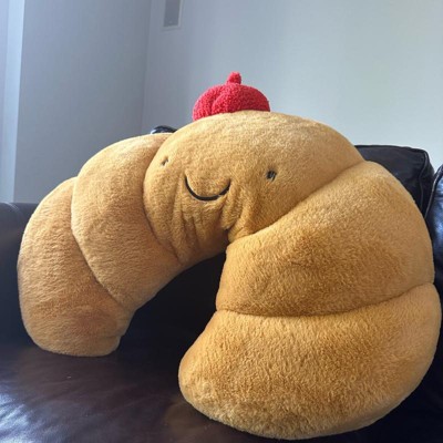 [This review was collected as part of a promotion.] This jumbo croissant buy pillow for is the biggest croissant I've ever seen and the cutest pillow I've ever laid my eyes on. I cannot describe how big this pillow is. It takes up a whole seat of a couch. The material is so soft. I love the detail of the French beret on top of Mr. croissant. My kids loved this and are fighting over.