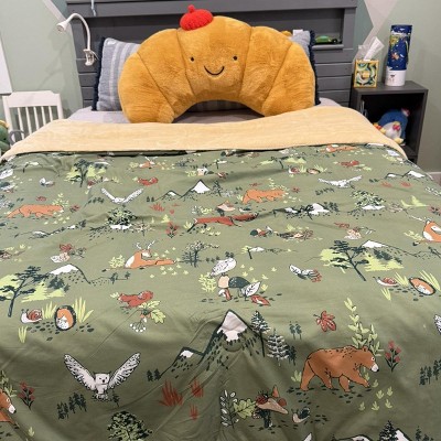 [This review was collected as part of a promotion.] I will admit that I bought this initially for my 5 year old but it went straight to my bed. It’s so soft and cushy! It’s a great cuddle pillow and pretty large on a king size bed. Little croissant is the cutest thing ever. The pillowfort line just gets cuter and cuter every year. This is adorable for Valentine’s Day but also just anytime for a cute little carb buddy!