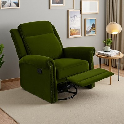 This glider chair combines comfort and style with its smooth swivel function and fabric upholstery, making it a versatile addition to any living space.