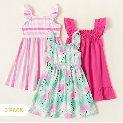 PATPAT Multipack 3pk Girl Toddler Dresses Sleeveless Flamingo Striped Toddler Casual Ruffle Cute Dresses