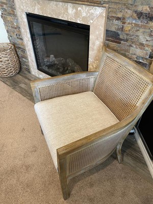 [This review was collected as part of a promotion.] My Review for Diedra Cane Armchair-- Madison Park, this chair is so beautiful assembly was easy. I found it was the perfect accent chair, exactly what I have been looking for. It's rustic look goes well with my decor. As for the chair itself it's pretty solid and the cushion is nive and firm. Overall it's aesthetically pleasing and comfortable. Very pleased with this piece of furniture.