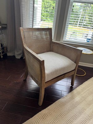 [This review was collected as part of a promotion.] I absolutely love the Deidra Cane Armchair! The chair was nice nicely packaged. I could not believe how easy it was to put together and the quality of the wood. My 8 year old sons helped hold the first two pieces together while I completed the first step, and I was easily able to finish the rest of the steps by myself. The natural, solid wood is beautiful and made with quality materials. I love how the cushion has a zipper for easy cleaning. The seat is very comfortable and I love the deep seat of the chair because I can easily cozy up in it. This armchair is gorgeous and has a modern but classic look!