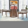The Pavia Round Dining Table by Lifestorey provides your dining room a unique and wonderful focal point. This striking table is designed with a sturdy Strongbow base and supportive slats made from solid rubberwood. The spacious 45-inch tabletop is constructed of veneered MDF, showcasing a beautiful wood grain in a warm Walnut finish offers the epitome of Mid-Century modern design.