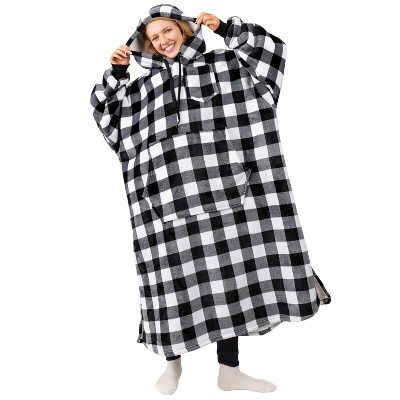 PAVILIA Faux Shearling Wearable Blanket Hoodie, Cozy Oversized Hooded Sweatshirt Adults, Warm Fleece Big Pocket (Checker White, Adult)