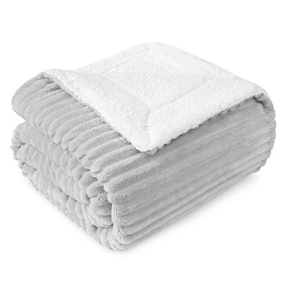 PAVILIA Fluffy Faux Fur Reversible Throw Blanket for Bed, Sofa, and Couch, Light Gray/Throw - 50x60