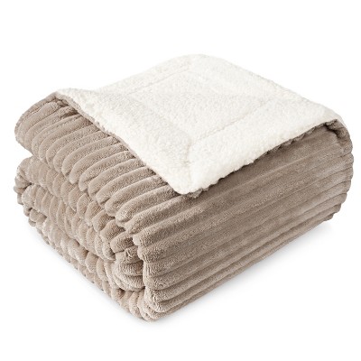 PAVILIA Fluffy Faux Fur Reversible Throw Blanket for Bed, Sofa, and Couch, Taupe/Throw - 50x60