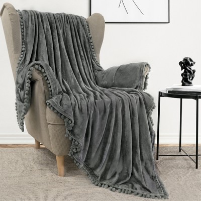 PAVILIA Luxury Fleece Blanket Throw for Bed, Soft Lightweight Plush Flannel Blanket for Sofa Couch , Dark Gray/Twin - 60x80