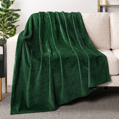 PAVILIA Luxury Fleece Blanket Throw for Bed, Soft Lightweight Plush Flannel Blanket for Sofa Couch, Emerald Green/Throw - 50x60