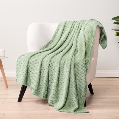 PAVILIA Luxury Fleece Blanket Throw for Bed, Soft Lightweight Plush Flannel Blanket for Sofa Couch , Green Gingerbread/Throw - 50x60