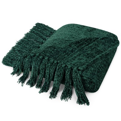PAVILIA Chenille Throw Blanket with Woven Knitted Tassel Fringe for Couch, Living Room Decor and Bed