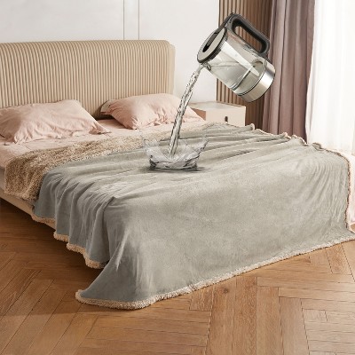 PAVILIA Waterproof Blanket Throw for Bed Sofa Couch, Leakproof Faux Shearling Fleece Protector, Plush Soft Warm Fuzzy Light Grey, 90x90 Inches