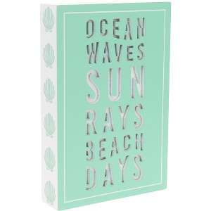 - IN-HOUSE DESIGN: Featuring the phrase “OCEAN / WAVES / SUN / RAYS / BEACH / DAYS” in crisp white block letters on a seafoam blue-green background. Shell silhouettes line the side of the block, complementing the coastal theme. The contemporary layout ensures it fits seamlessly into a wide range of décor styles.