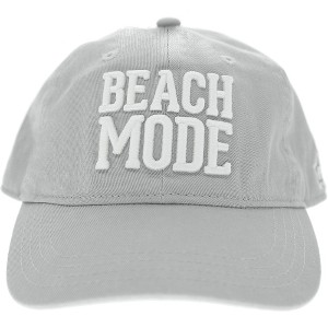 One-Size-Fits-Most beige gray baseball cap hat. Made from 100% cotton and features weatherproof & rust-proof hardware. The small holes in the top of each hat section make it more breathable. In addition, the brim can be bent to the desired arch. Snap with an adjustable strap that can be tucked away into the backside hat. The front of the hat features a 3d white embroidered patch "Beach Mode" sentiment. The underside brim of the cap has a screen printed "Meant For The Beach" sentiment accompanied by a pair of flip-flops in white. Spot clean only; leave out in the sun to dry. It is packaged in a polybag with a plastic j hook and hangtag. The beach is a beautiful getaway to soak up the sun, ride the boat, sit next to the fire, stick your toes in the sand, take a dip in the coastal ocean and create summertime memories that will last a lifetime. So give your beach lover friend the best apparel to wear/sport all summer. .