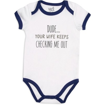 - IN-HOUSE DESIGN: "I Like Big Trucks And I Cannot Lie" text is printed onto the front of the bodysuit.