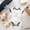 - IN-HOUSE DESIGN: Gray trimmed edges surround the neck, arms, and thighs. The "Both My Parents And I Drink Out Of A Bottle" screen-printed sentiment is on the front center of the bodysuit. Itch-free tagless sizing is printed on the interior collar. The center upper back features a light gray logo.