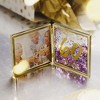 - PREMIUM QUALITY: 4.75" double-sided hinged frame, packaged in a plain box, is made from glass and metal, features glitter that moves around within the frame, and fits a 4.5x4.5" photo. This self-standing frame extends to almost a 180-degree angle to ensure solid support. Gold text printed on the glass matches the frame color. Pink, blue, purple, and silver glitter in various sizes match the festive tone. Frame folds in half neatly for easy storage and transport. Two removable foam inserts securely hold the photo frame backing in place and make for easy and insertion and removal of pictures. Frame fits your favorite square photo!