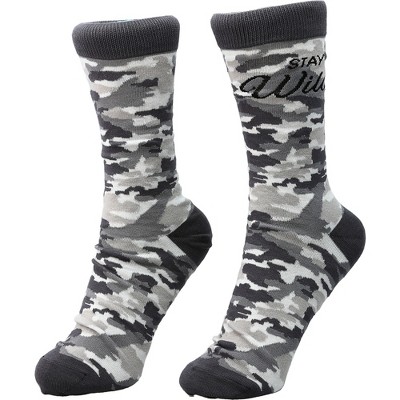 - IN-HOUSE DESIGN: "If You Can Read This More Coffee Please" text is sewn into the side of the socks with a gray camo pattern that covers all but the heel, ankle and toe which are solid.