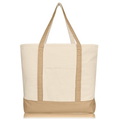 - PREMIUM QUALITY: Large 12 x 13 x 8 inch striped double handled canvas grocery bag is made from 100% cotton canvas.