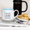 - PREMIUM QUALITY: This 17 oz. stoneware mug has ribbed-textured ceramic walls, a glossy white interior and exterior, and a unique gray textured sand-glazed bottom that covers ¼ of the cup. A large comfortable handle that fits almost anyone’s hand; sits right above the gray base and nearly reaches the top edge of the cup. Sentiment faces towards you when held in your right hand and outward when held in your left hand.