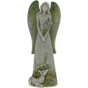 - This figurine is a beautiful tribute to the companionship and gentleness symbolized by the deer resting at the angel’s side. The angel’s wings feature a textured, natural design, blending harmoniously with her gown, which has been adorned with subtle floral accents to evoke the serenity of a forest. Her peaceful expression and gentle interaction with the deer create a calming, nurturing presence, perfect for any nature-inspired decor.