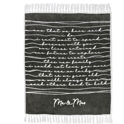 - PREMIUM QUALITY: 50" long x 60" tall and .5" wide premium throw is made from 400 GSM, 100% polyester plush jacquard with thirty-one hand-made knotted tassels at both the top and bottom of each blanket which extends the height of the blanket to 72.5" in total. The excellent packaging consists of a silk white bow-tied ribbon with a gray cardboard band containing material and sizing information. Attached is a thick paper tag with the entire blanket sentiment. The blanket is neatly folded and securely attached to white wood and a silver metal hook hanger.