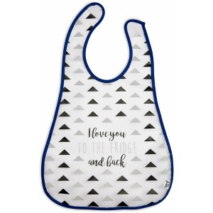 - IN-HOUSE DESIGN: "I Love You To The Fridge And Back" text is printed onto the front of the bib alongside a triangle pattern.