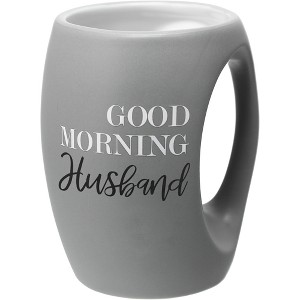 - IN-HOUSE DESIGN: "Good Morning Husband" white and black sentiment decal on the front side of the matte gray cup. The Interior is white and has a glossy glaze prop 65 food-safe finish. We designed and created this mug to blend in with any of your kitchen's current drinkware collections with a refined, modern, and aesthetically pleasing look paired with humor and relatable sentiment.